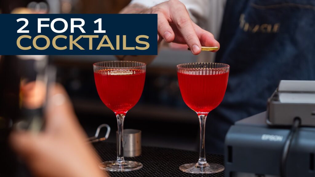 Pull up a stool at the bar or settle down on our terrace and raise a glass with someone worth the company, as you enjoy 2 for 1 on a range of some of our favourite cocktails*. No reservation needed… just walk in, order two, and pay for one.